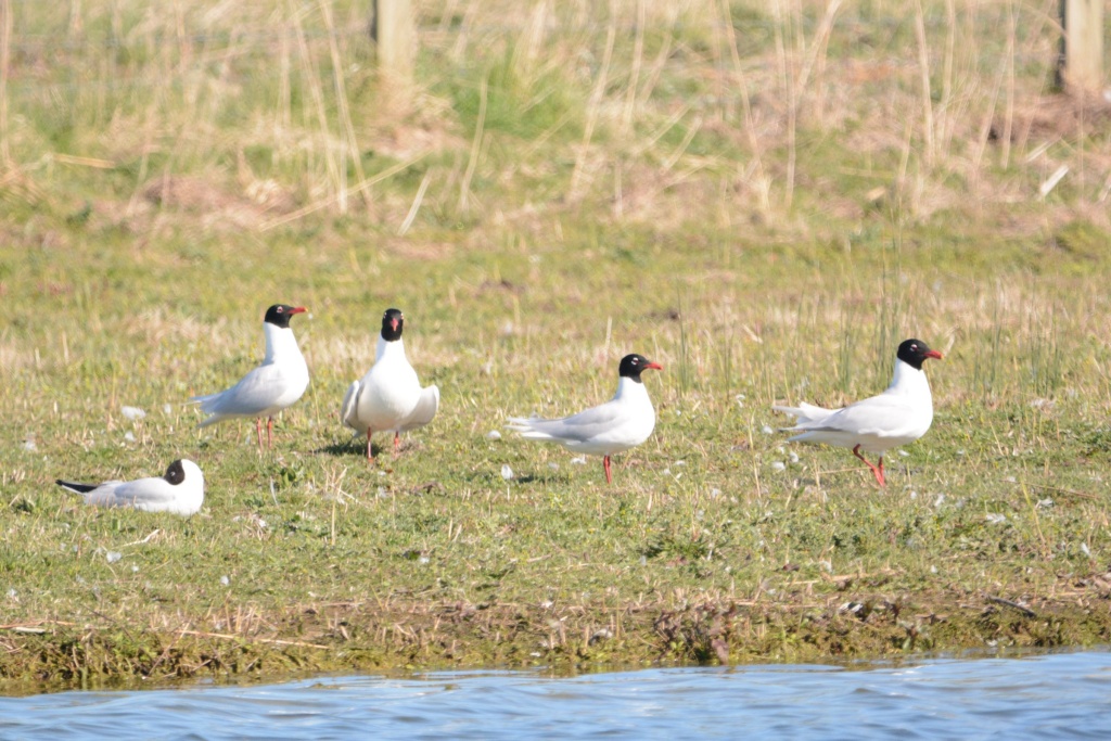 Seven Mediterranean Gulls, two Red Kites, a Swallow, and a Willow Warbler were on/over the Estate. Two Great White Egrets were visible on Willow Farm from the Drove and two Sedge Warblers singing along the Worth track.