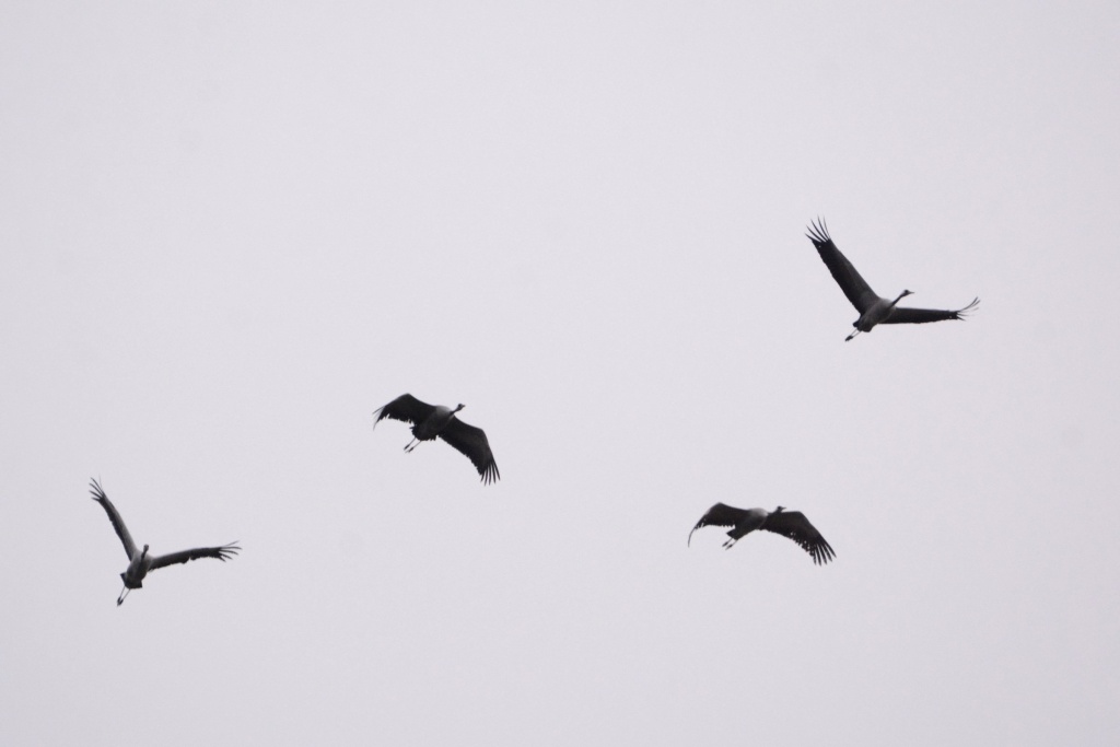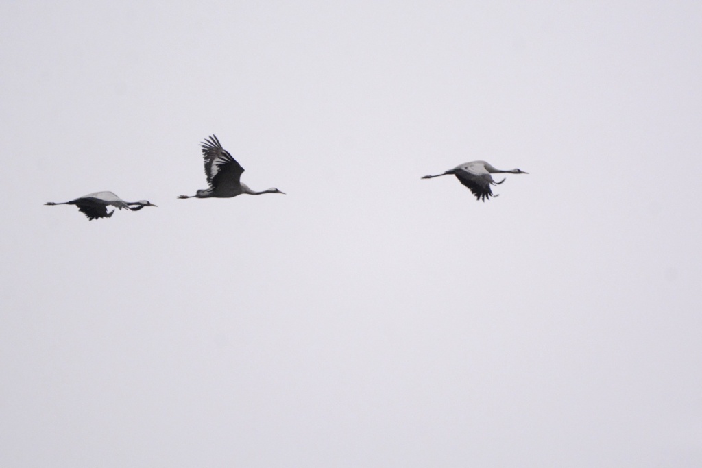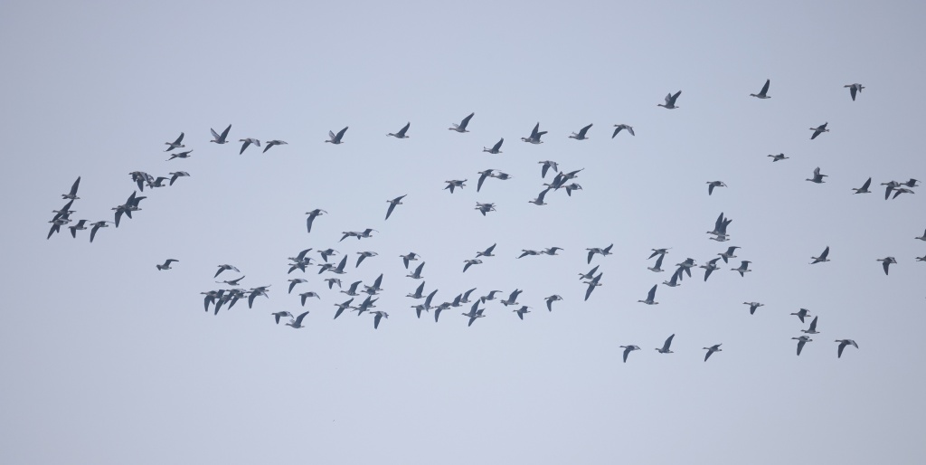 The wintering flock of Tundra Bean Geese and White-fronted Geese flew over the Estate.