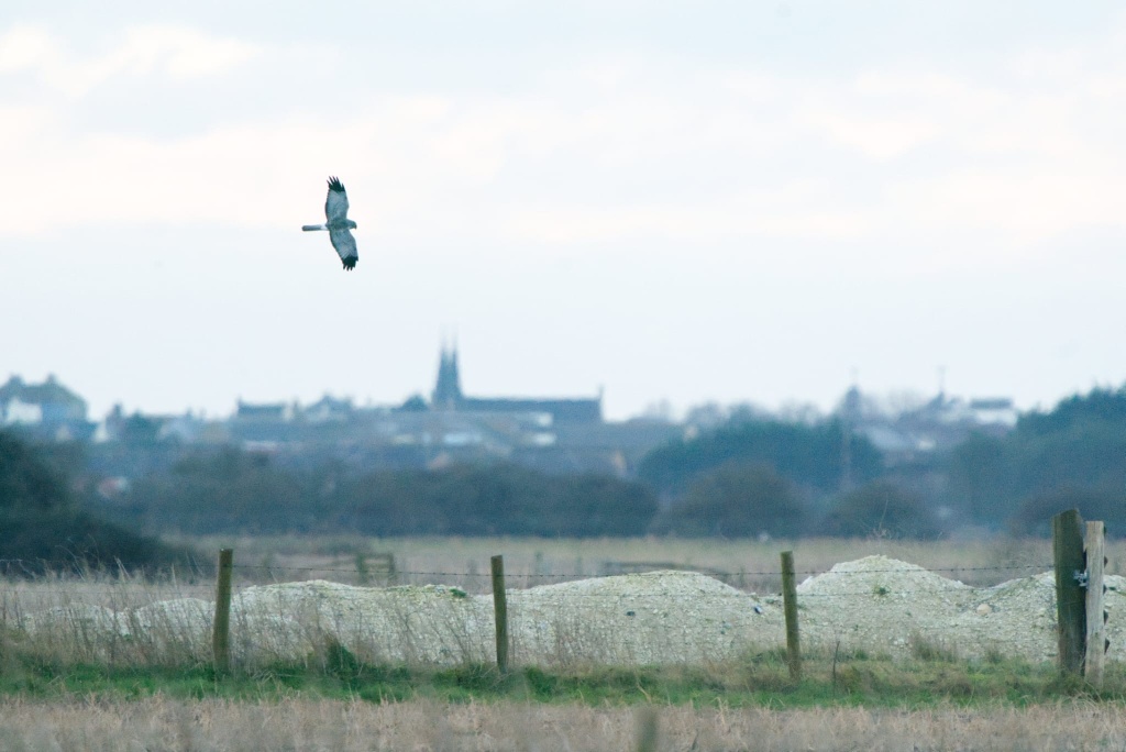 A male Hen Harrier flew across the asparagus fields towards Willow Farm early in the morning. Elsewhere on the Estate there were a few Redwings, a Cattle Egret, and the regular Black Redstart around Sandilands/Yacht Club. At least 120 White-fronted Geese remained on RSPB Worth marshes.