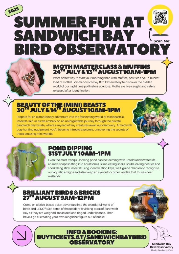 Tue 5 Aug 2025 10:00 AM - 1:00 PM BST Sandwich Bay Bird Observatory Trust - Field Centre, CT139PF
